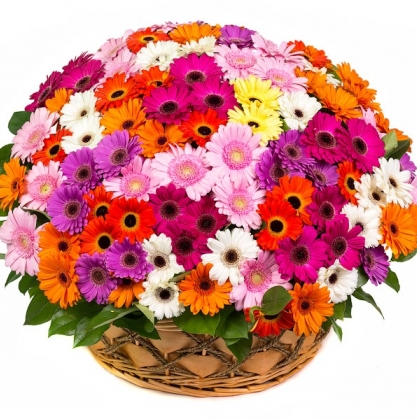 Корзина с разноцветными герберами станет самым ярким подарком и подарит бурю впечатлений!