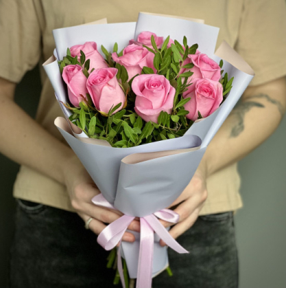 Купить букет из 9 розовых кенийских роз в Сумгаите