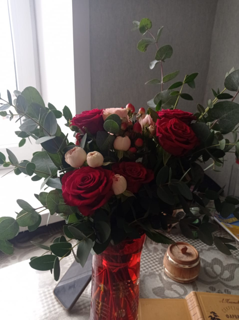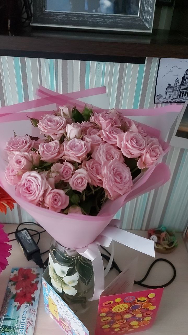 Спасибо большое за букет пионовидных роз, очень приятно получать такие шикарные цветы в свой день рождения