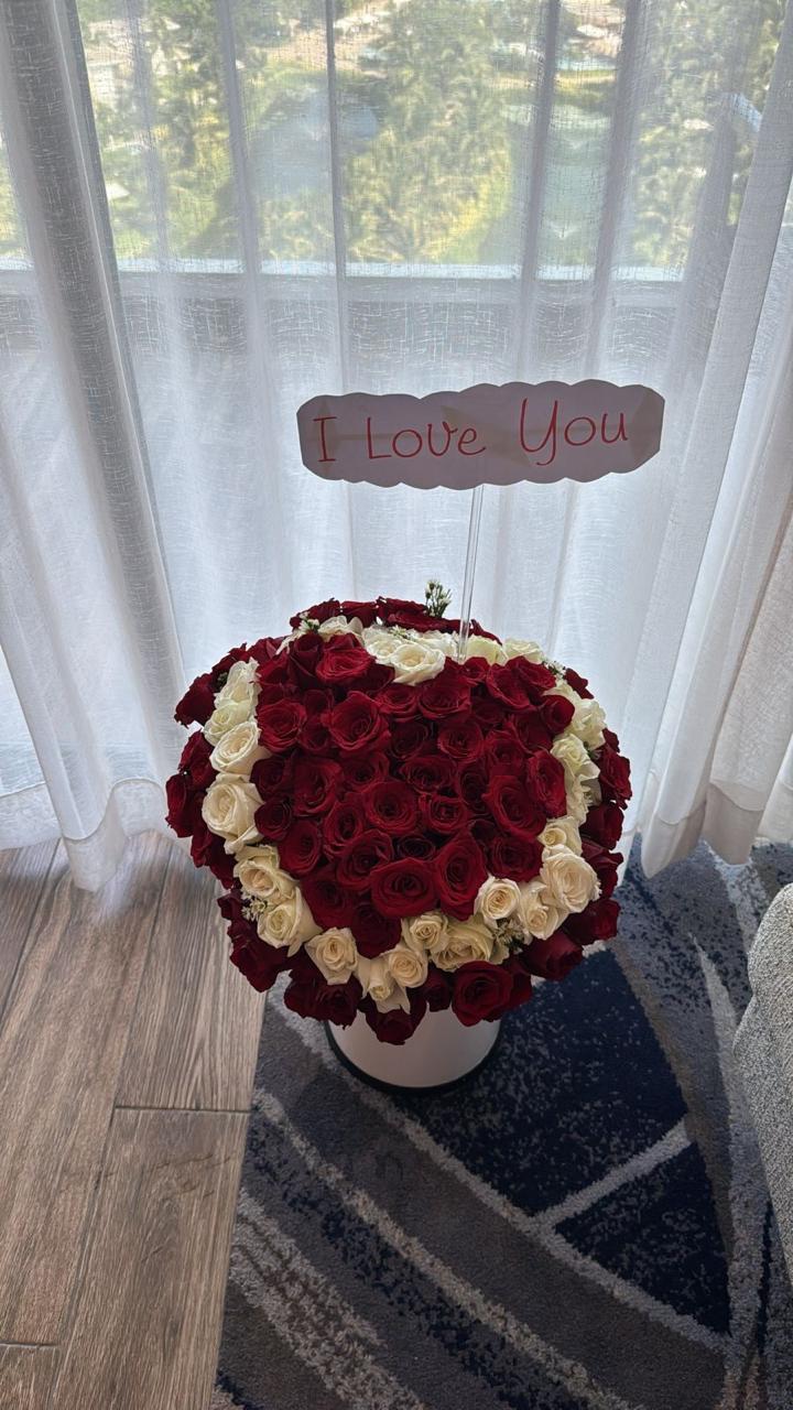 Я покупал букет из красных роз + метрового мишку. Честно говоря, меня мишка сильнее порадовал, поскольку я цветы не очень люблю, но и они были вроде красивые, на мой скверный оценочный взгляд.