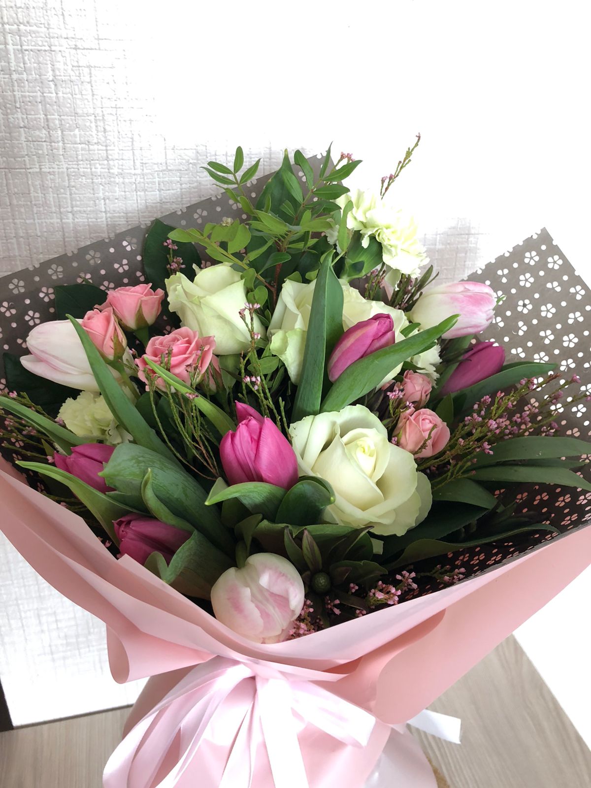 Идеальный выбор для доставки! Как обычно заказывала букет на доставку в день мероприятия, другие компании день в день по времени не готовы везти как нужно мне, а тут время подобрали, с выбором цветов помогли, подсказали по декору, со мной были на связи по любому вопросу, для меня это очень важно, так как заказывал из Иркутска. Курьер вошел в положение и подождал маму возле подъезда, чтобы передать букет! Цветы красивые, сервис удобный, персонал отзывчивый и ориентирован на клиента. Благодарю Вас за вашу работу!