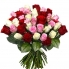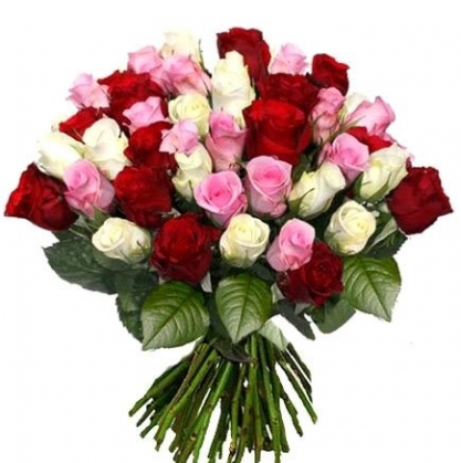 Букет из 35 роз белого, розового и красного цвета. Размер букета в первую очередь зависит от высоты роз. Высота на выбор: 50, 60, 70см.