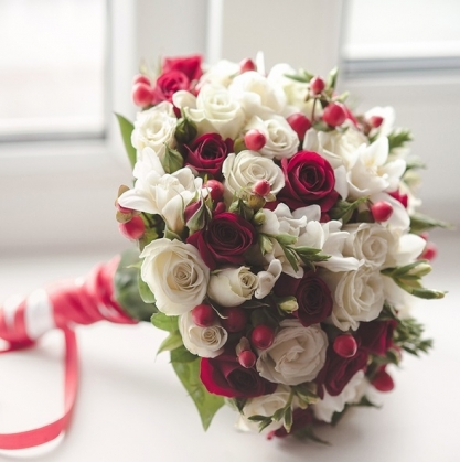 Букет невесты сочетаюший в себе одиночные и кустовые розы, с добавлением гиперикума. Бутоньерка и пакет лепестков в подарок!