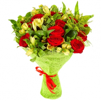 - Альстромерия и розы -классическое и элегантное сочетание, добавляющее букету объема и роскоши.