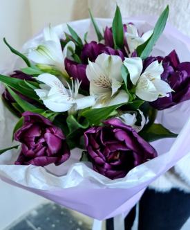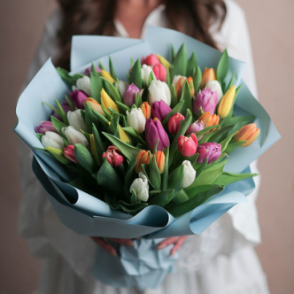 Составляя букеты из тюльпанов, мы используем разные их оттенки. Вы можете заказать у нас букеты из красных, желтых, белых, фиолетовых, оранжевых, сиреневых, розовых и других цветов. В одной композиции могут присутствовать тюльпаны разных оттенков. Кроме того, они могут дополняться другими растениями (например: ирисами, гиацинтами, анемонами), создавая красивейший букет.