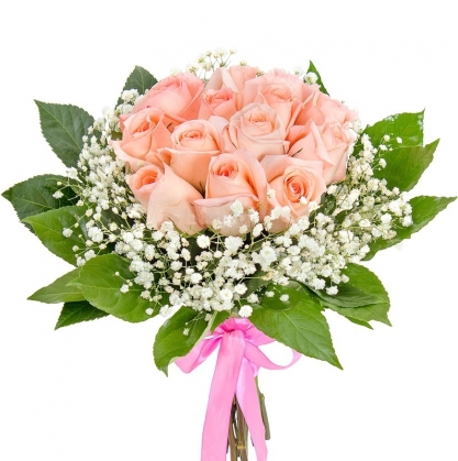 Персиковые розы с гипсофилой | Купить в Сумгаите