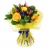 Название букета говорит само за себя. Желтые розы, альстромерии и ирисы с добавлением зелени в красивой упаковке.