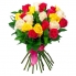 Яркий и очень стильный букет роз красного, белого и желтого цвета.