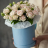 Очень нежная шляпная коробка с кремовыми кустовыми розами. При этом вы можете сделать композицию более объемной, просто увеличив количество роз.
