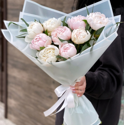 Букет 9 пионов в матовой пленке | Купить в Сумгаите