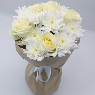 | Просто так | Ромашки, подсолнухи, кенийские розы | Минимализм, крафт-пакет или лента |