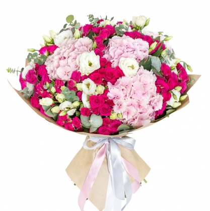 Букет из гортензий, кустовых роз, эустомы и эвкалипта | Купить с доставкой в Сумгаите