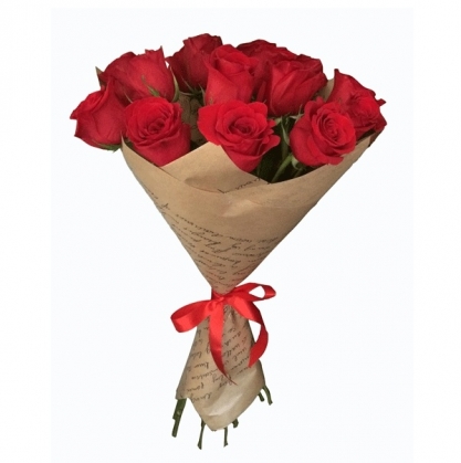 Состав букета: 15 роз Фридом, крафт бумага, лента.