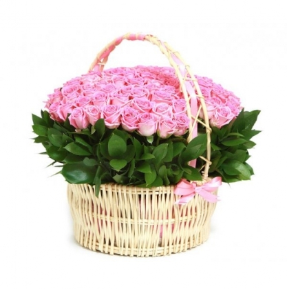 Купить 101 розовую розу в корзине с доставкой в Сумгаите