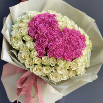 Сердце из 101 белой и розовой розы | Купить в Сумгаите
