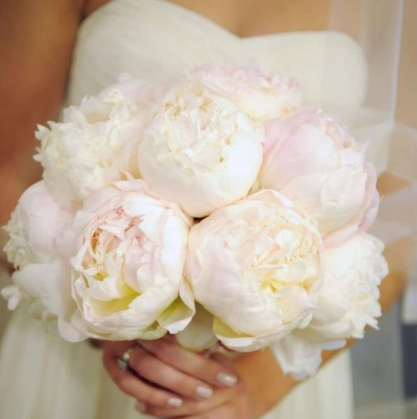 Букет невесты из белоснежных пионов. Используются отборные пионы высшего сорта.