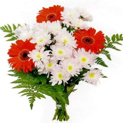 Заказывал букет "Хризантемы и герберы" увеличенный. В итоге букет выглядел даже лучше, чем ожидалось!